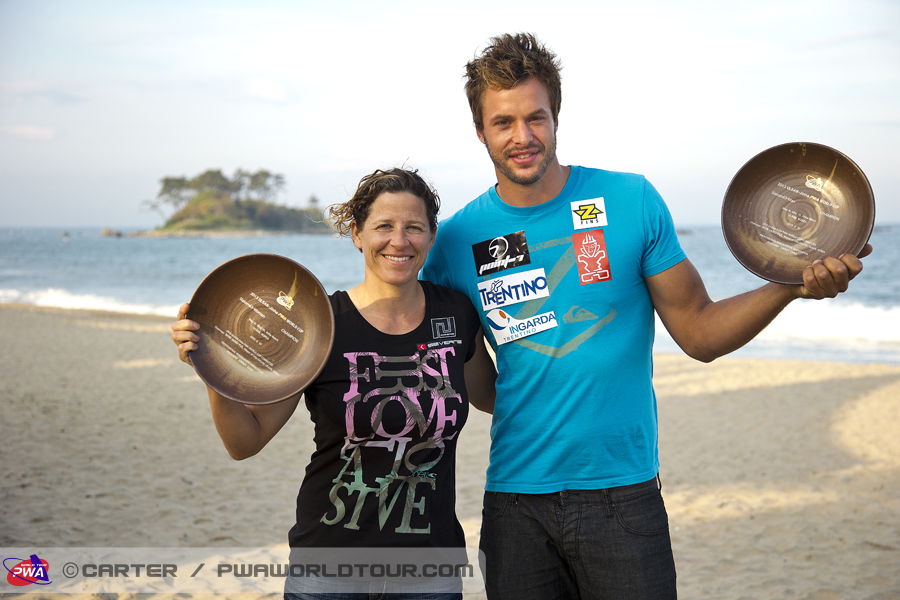 The 2013 Ulsan PWA World Cup will be an event that Alberto Menegatti (Starboard / Point-7) will remember forever as the Italian claimed his maiden PWA event victory after a terrific performance. Whilst Karin Jaggi (Patrik / Severne) produced a superb display to be crowned the Queen of Jinha beach, as she became the first woman since 2010 to prevent Valerie Arrighetti (Tabou / Gaastra / Mystic) from claiming the top spot. Jinha beach once again showed why South Korea is one of the most challenging spots on the tour, as varying conditions pushed the men and women to their limits to cap another brilliant event.