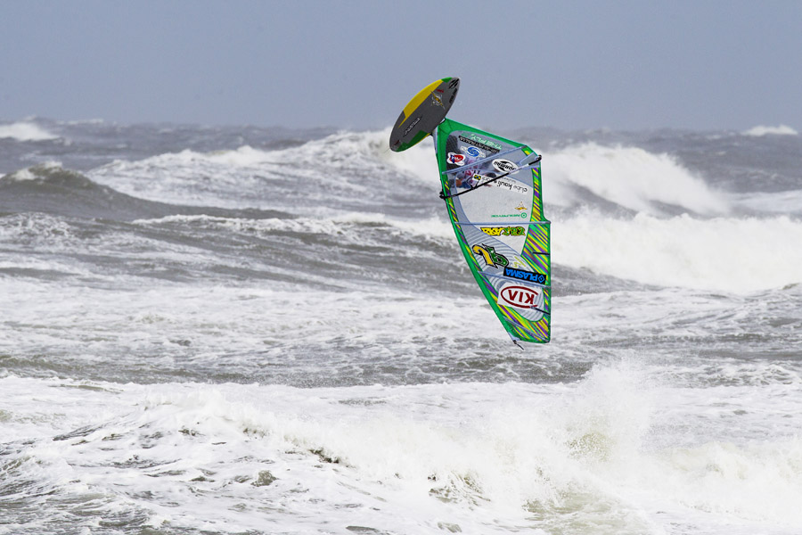 As soon as the riders in the first heat hit the water it was all too obvious that the double forward was no longer king. Within thirty seconds of stepping on his board, Britain’s Robby Swift (JP, NeilPryde) hit a perfect ramp and spun round the highest pushloop forward the judges had ever seen. With twelve points in the bag, Swift could’ve spent the rest of his heat watching his peers destroy themselves, but instead he carried on in search of another, only to hit his head and return to the beach requiring medical attention!